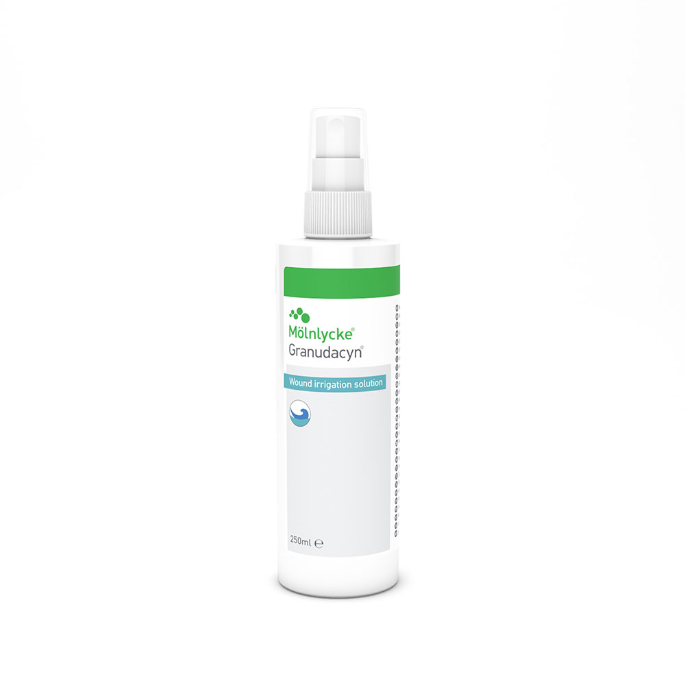 Confeccionado com ácido hipocloroso (HCIO), a solução promove segurança na limpeza e recuperação e faz do Granudacyn ® uma solução confiável para irrigação de feridas. Também possui ação hipotônica para lidar com as bactérias no leito da ferida.